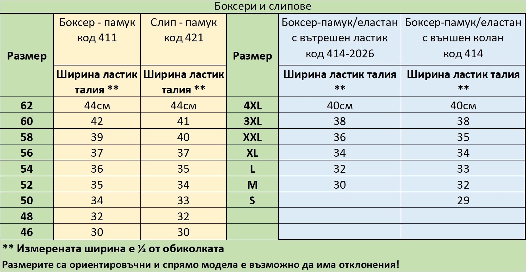 Цената на боксерките варира според размера. При избор на размер, се визуализа и цената за съответния размер.